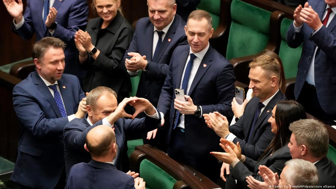 Polonya Cumhurbaşkanı Andrzej Duda başkent Varşova'da bulunan başkanlık sarayındaki yemin töreninde yaptığı konuşmada "Bu Polonya için çok önemli bir an. Siyasi süreçle kazandığınız için sizi tebrik ediyorum" dedi. Milliyetçi muhafazakar Hukuk ve Adalet Partisi'nin (PiS) eski bir üyesi olan Duda, Tusk'a iş birliğine hazır olduğu mesajı verdi.