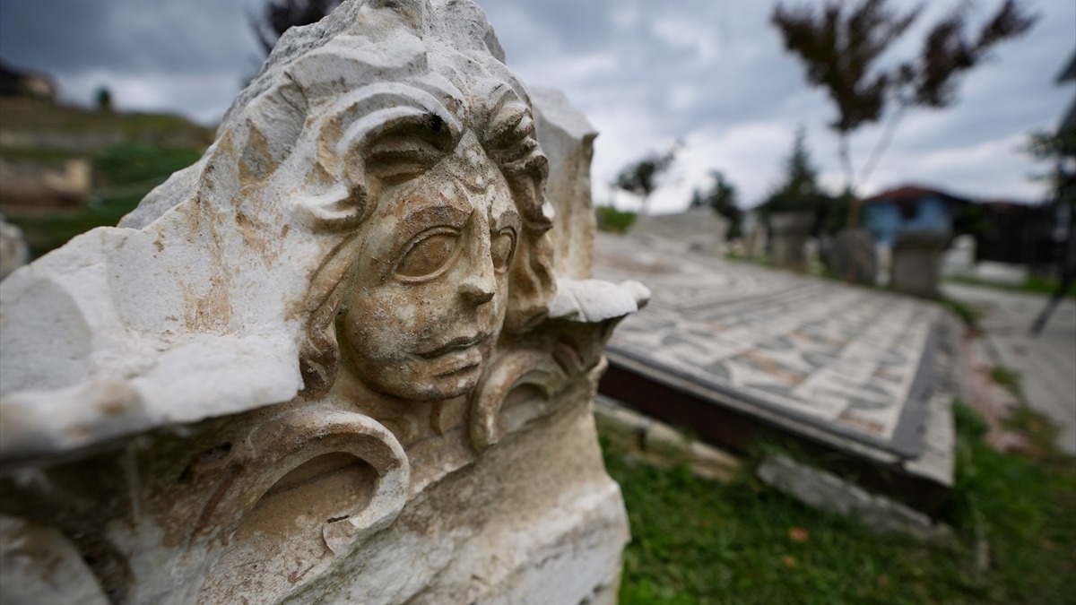 Kazılarda bugüne kadar 2 bin yıllık olduğu değerlendirilen, Yunan mitolojisinde "gözlerine bakanı taşa çeviren, yılan saçlı dişi canavar" olarak bilinen Medusa heykel başı, mask (yüz kalıbı) heykelleri ile grotesk (eski çağ Roma yapılarında bulunan tuhaf, gülünç figürlerden oluşmuş süsleme) figürü ve tonoz (tavan örtüsü) bulundu.