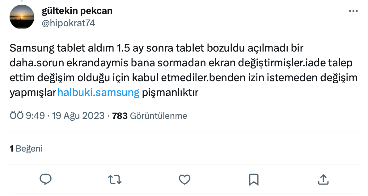 Servis çağrısının ardından gelen ekip, televizyonu inceledikten sonra bir rapor sundu ve cihazın sorunlarını iletmek üzere Samsung Türkiye ile iletişime geçti.