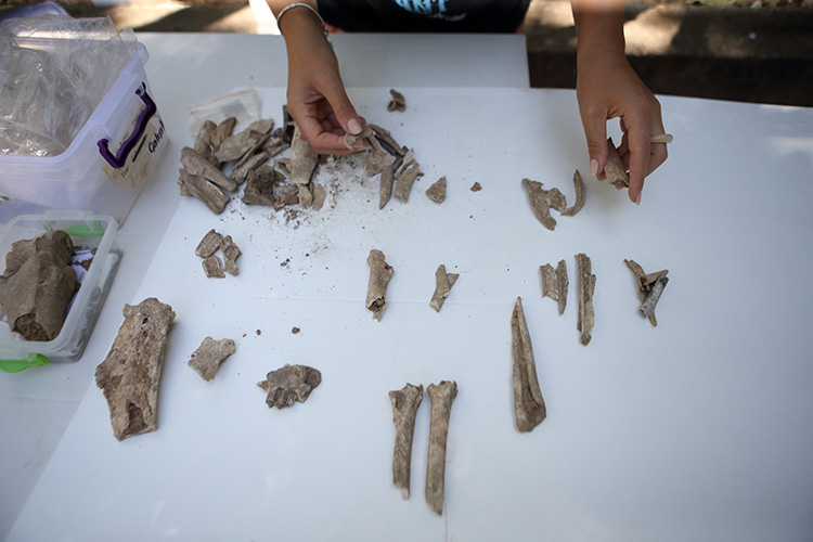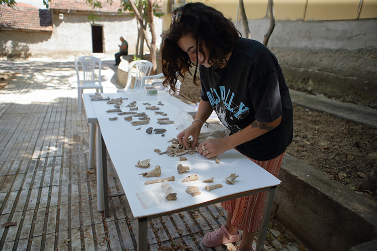 Zooarkeoloji alanında akademik çalışmaları bulunan ve kazı ekibine 5 yıl önce katılan Ankara Hacı Bayram Veli Üniversitesi Arkeoloji Bölümü doktora öğrencisi Pınar Perçin Gerçek de kemik parçalarını inceleyerek, dönemin beslenme alışkanlıkları hakkında araştırma yapıyor.