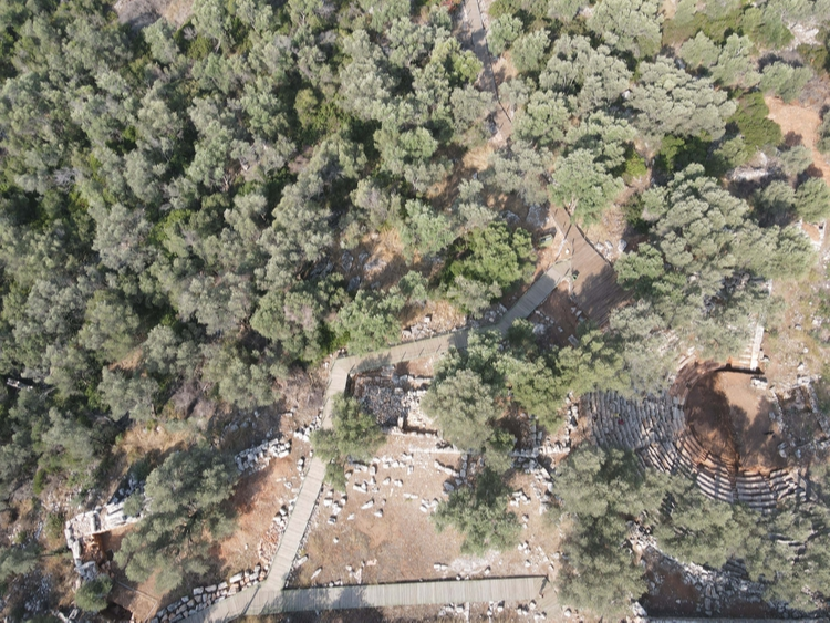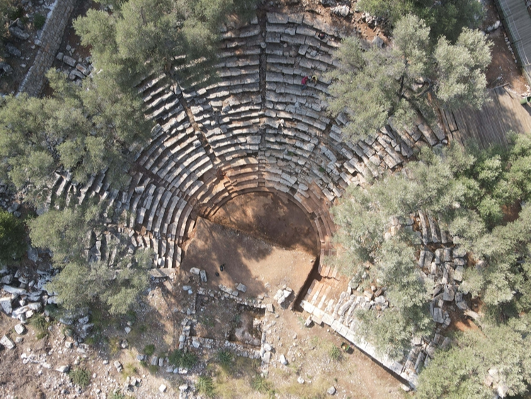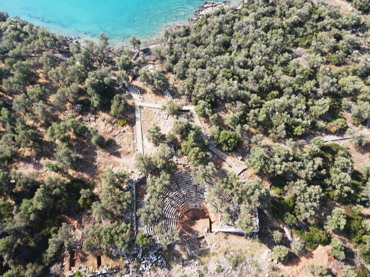 Gökova Körfezi'ne hakim konumda bulunması, sadece denizden ulaşılması ve korunaklı limanlarıyla dikkati çeken Kedrai Antik Kenti'nde yer alan tiyatro ile surlar gün yüzüne çıkarılıyor.