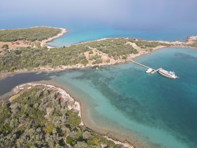 Kazı ekibi, antik kentin bulunduğu Sedir Adası'na gitmek için Marmaris-Gökova kara yolunun 20. kilometresinden Çamlı Mahallesi'ndeki iskeleye geliyor. Buradan teknelere binen ekip, yaklaşık yarım saatlik yolculuğun ardından antik kente ulaşıyor.