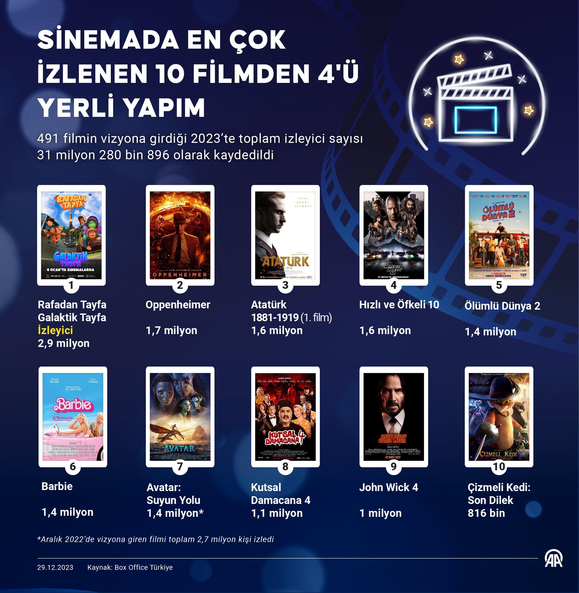 Amerikalı fizikçi Julius Robert Oppenheimer'ın hayatına odaklanan "Oppenheimer" filmi, 1 milyon 704 bin 369 seyirciyle en çok izlenen ikinci yapım oldu.