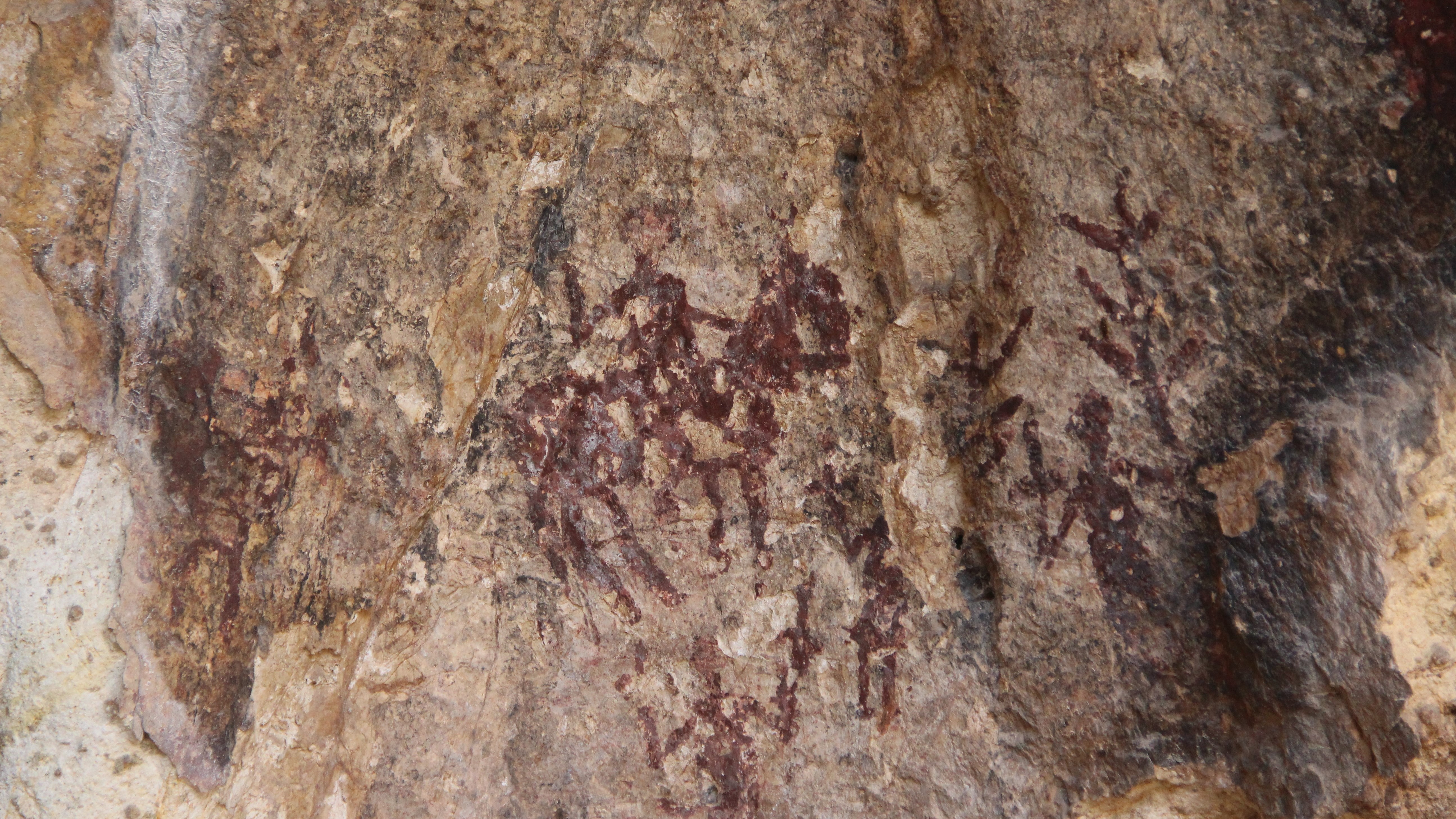Hangi zamana ait olduğu bilinmeyen kaya mağaraların girişinde bulunan at, geyik ve sıralı insan figürlü resimler gizemini korumaya devam ediyor.