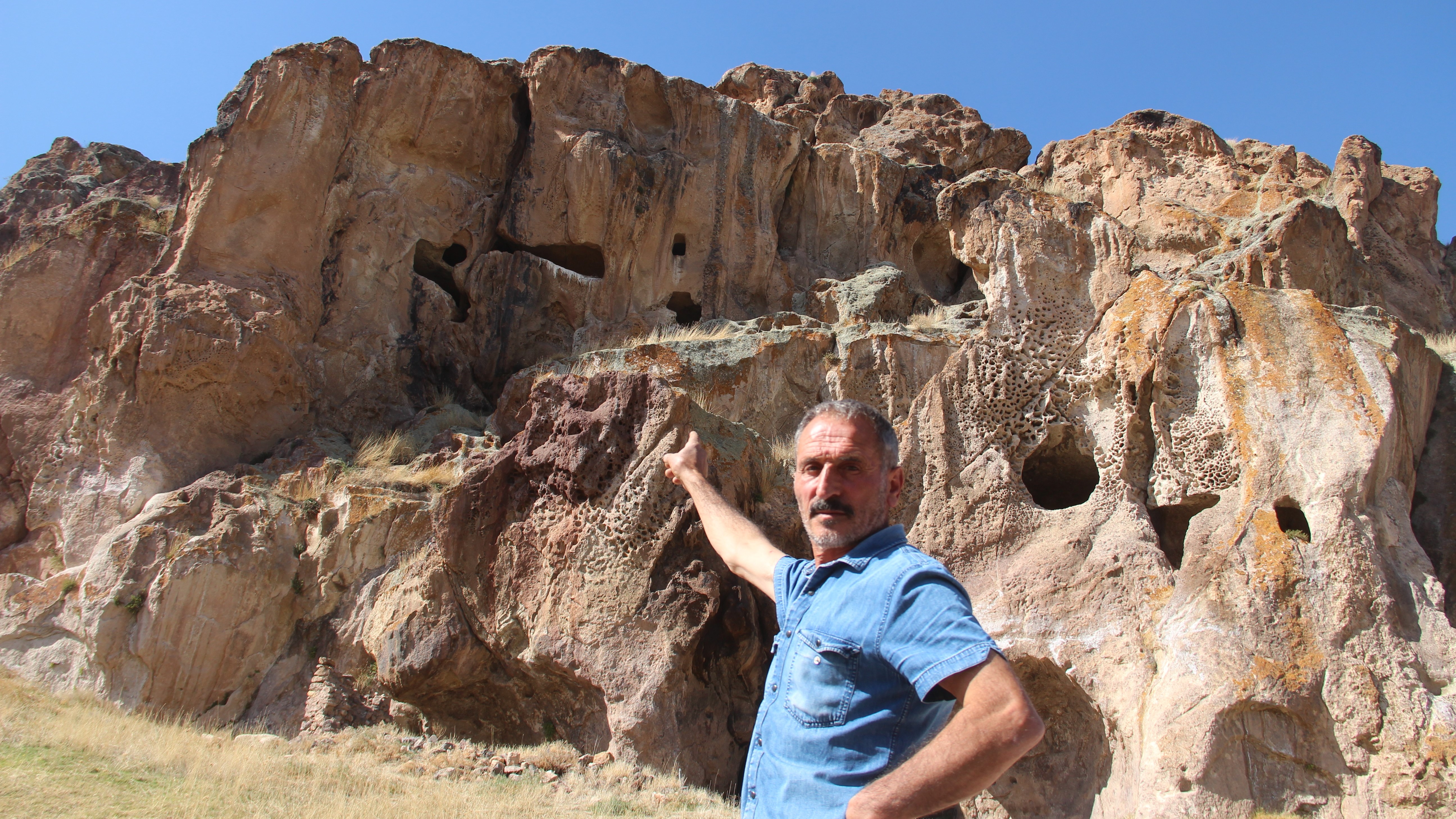 Bu alanın gizli bir mabet olarak kullanıldığını düşündüren motiflerin bulunduğunu vurgulayan köy sakinlerinden Hasan Koç ise, “Hangi döneme ait olduğunu tam bilmiyoruz ama Hristiyanlığın ilk dönemlerine ait işaretler var. Hristiyanlığın Roma baskısı altında olduğu döneme dair söylentiler var. O dönemlerde gizlice kullanılan bir mabet olduğuna dair motifler bulunuyor. Muhtemelen yazının da bulunduğu bir dönem fakat simgelerle hayvan motifleriyle bir anlatı yapılmaya çalışmış. Tam olarak ne zamana ait olduğu bilinmediği için bizler de emin değiliz. Hitit güneşine benzer simgeler var. At, geyik motifi var. Tekerlekle hareket eden insanlar var. Çoğunluğu tahrip olmuş eğer olmasa büyük bir tablo olurdu. Bunun bir hikâye anlatısı olduğunu düşünüyorum. Yukarılarda kayalar oyularak odalar yapılmış. Yaşam alanları inşa edilmiş. Buradaki motifler de o insanların gündelik yaşantılarından kesitler olabilir. Define arayanlar oluyor gelen gidenleri engellemeye çalışıyoruz ama burada bir çalışma yapılsa açık alan arkeoloji müzesi haline gelebilir” şeklinde konuştu.