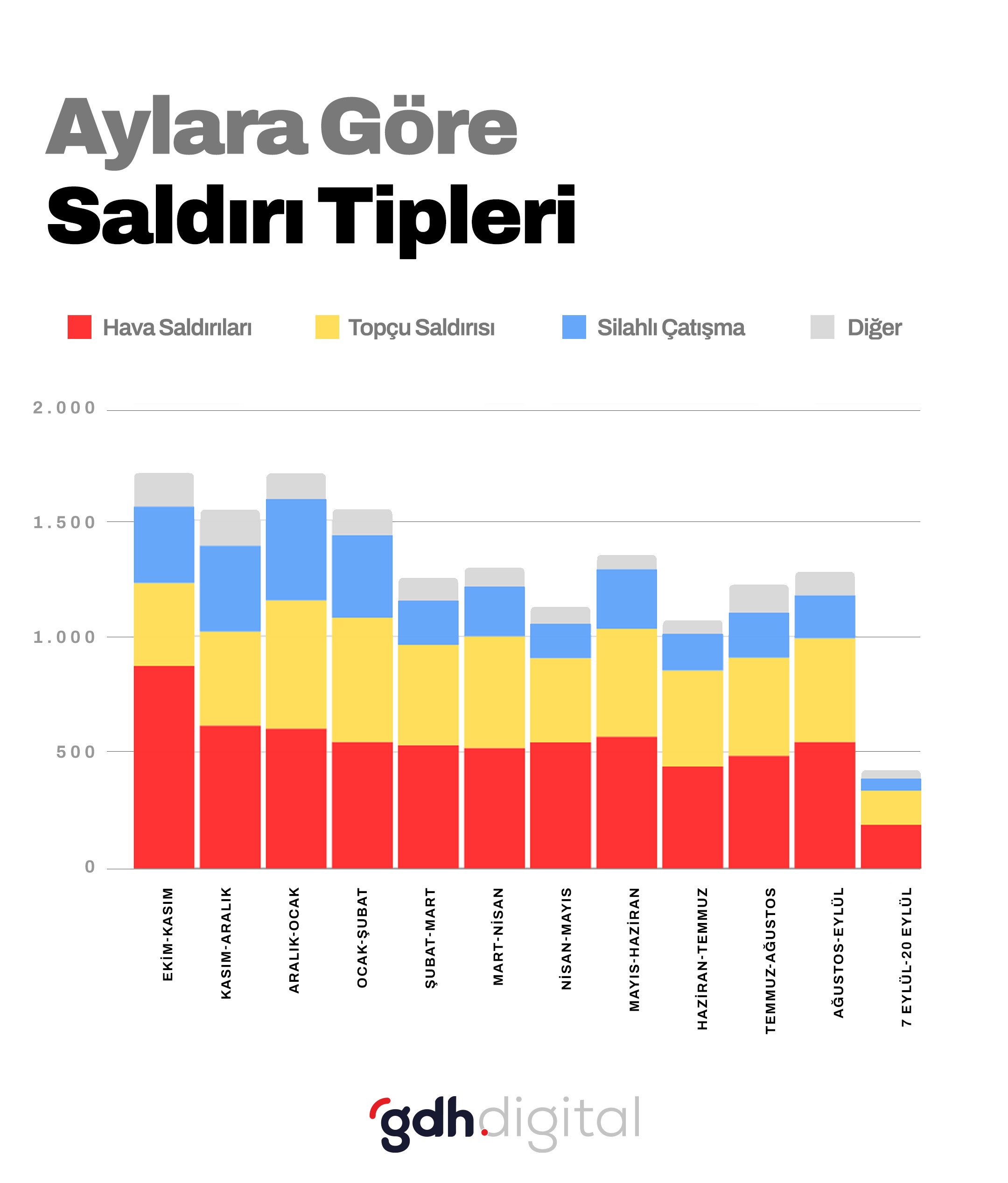 7 Ekim 2023'ten bu yana İsrail ordusu 12993'ü Gazze'ye olmak üzere toplam 15566 saldırı gerçekleştirdi. Bu saldırıların 6441'i hava saldırısı, 5017'si topçu saldırısı idi.