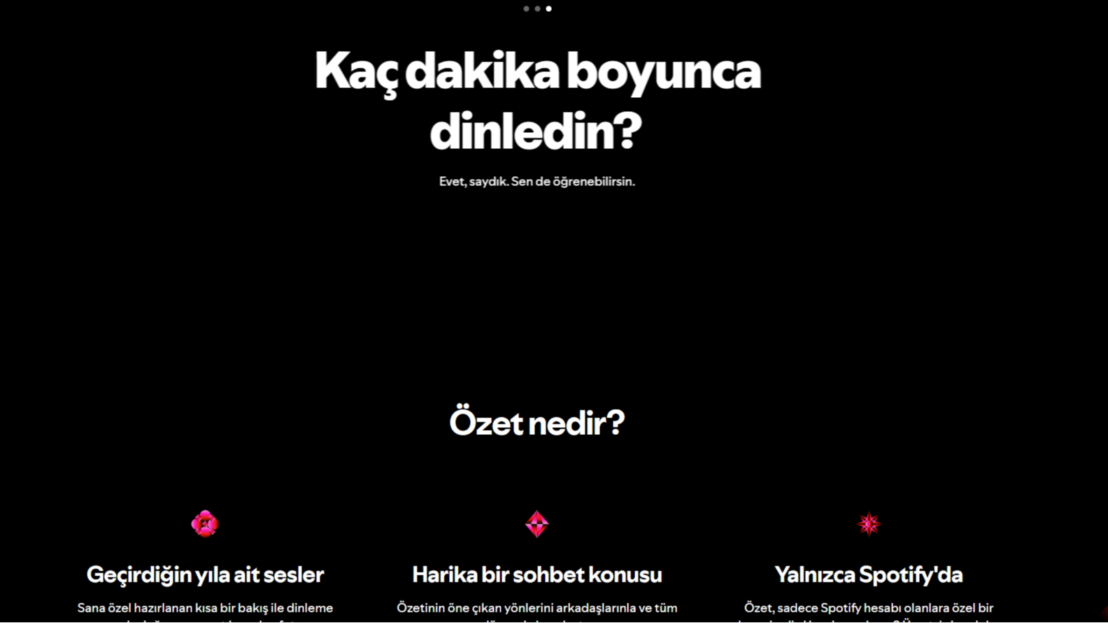 Kullanıcılarına özel kişisel dinleme özeti çıkaran uygulama, özet içerisinde kullanıcılarının en çok dinlediği sanatçıları, en çok dinlediği müzik türünü, platformda ne kadar vakit geçirdiklerini ve hatta en çok dinledikleri parçaları listeleyen bir özelliktir.