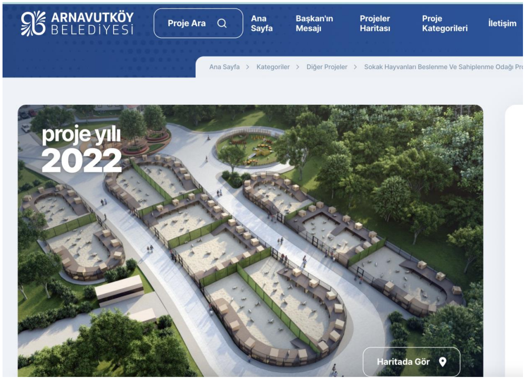 Belediyenin resmi web sayfasına baktığımızda, ‘Sokak Hayvanları Beslenme ve Sahiplenme Odağı Projesi’ başlığıyla bir haber karşımıza çıkıyor. Projenin detaylarını incelediğimizde ilk olarak proje yılının 2022 olduğunu görüyoruz.