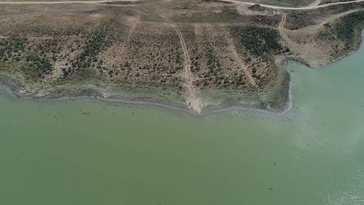 Bıyıkali, Osmanlı ve Banarlı Mahallesi Sulama Kooperatifi Başkanı Hasan Önbey, AA muhabirine, tarımsal sulama ihtiyacının karşılandığı gölette su seviyesinin ilk kez bu kadar düştüğünü söyledi.