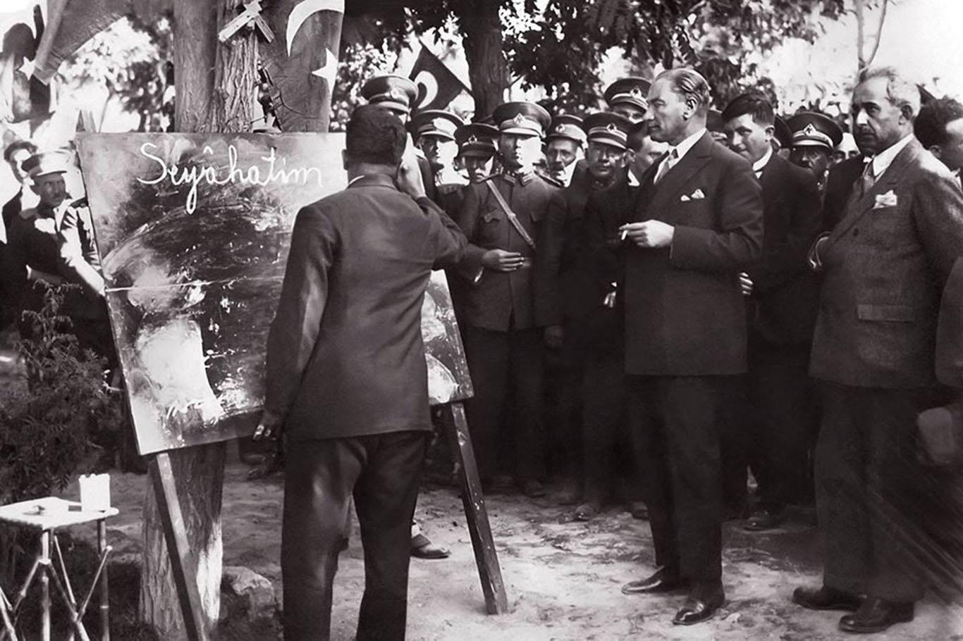 Falih Rıfkı Atay, o önemli ânı şöyle anlatıyor: “Gazi, Vali odasına bitişik meclis-i umumi salonuna geçti; memurlar ve vüzeraların teşkil ettiği yarım kavisin nihayetinde bir kara tahta vardı. Reisicumhur Hazretleri sordular; ‘Türk yazısını biliyor musunuz?’