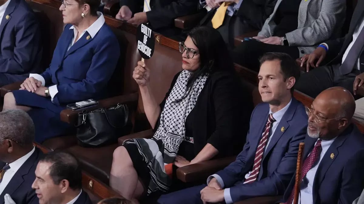 Kongre'deki tek Filistinli Amerikalı olan Temsilci Rashida Tlaib ise sadece protesto amacıyla puşi takarak ve protesto pankartları taşıyarak konuşmaya katıldı.