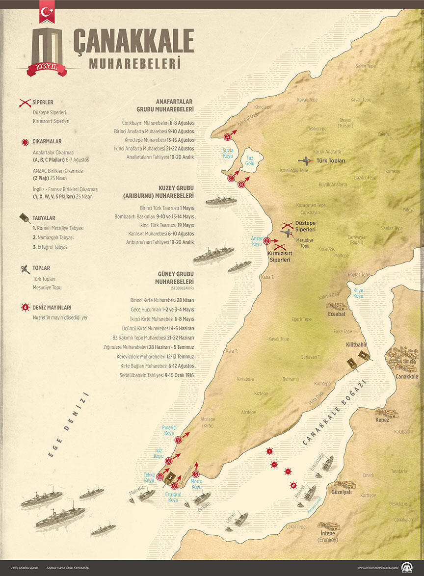 Böylece, 103 yıl önce "yedi düvele" karşı mücadele veren Türk milleti, "Çanakkale geçilmez" destanını tarihe altın harflerle yazdırdı.