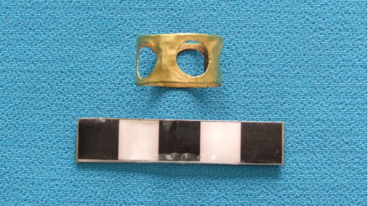Mezar odasının üst kısmında, hükümdarın şahsi eşyalarının bırakıldığı özel niş alanında ise tunçtan imal edilmiş halkalı bir ok ucu, bir altın yüzük ve üzerinde arkaik dönem yazı üslubuna benzediği düşünülen gizemli bir çömlek parçası tespit edildi.