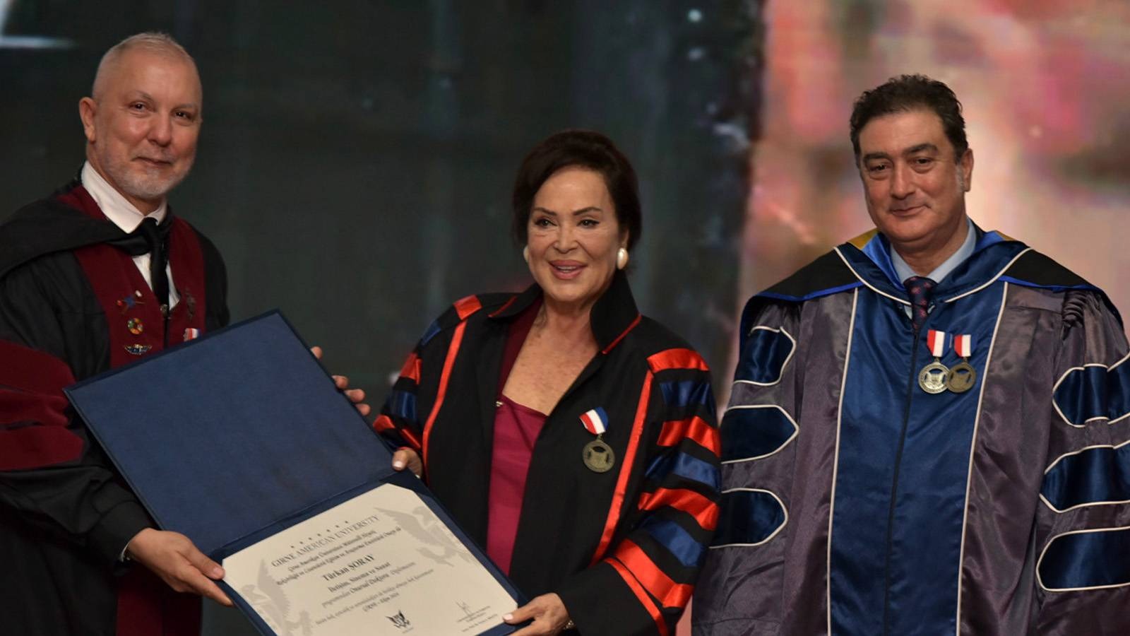 Yeşilçam'ın Sultan'ı ünlü sanatçı Türkan Şoray'a, Kuzey Kıbrıs Türk Cumhuriyeti'nde bulunan Girne Amerikan Üniversitesi tarafından "fahri doktora" ünvanı verilmişti. Dün yapılan resmi törenle Şoray'a ünvanı takdim edildi.