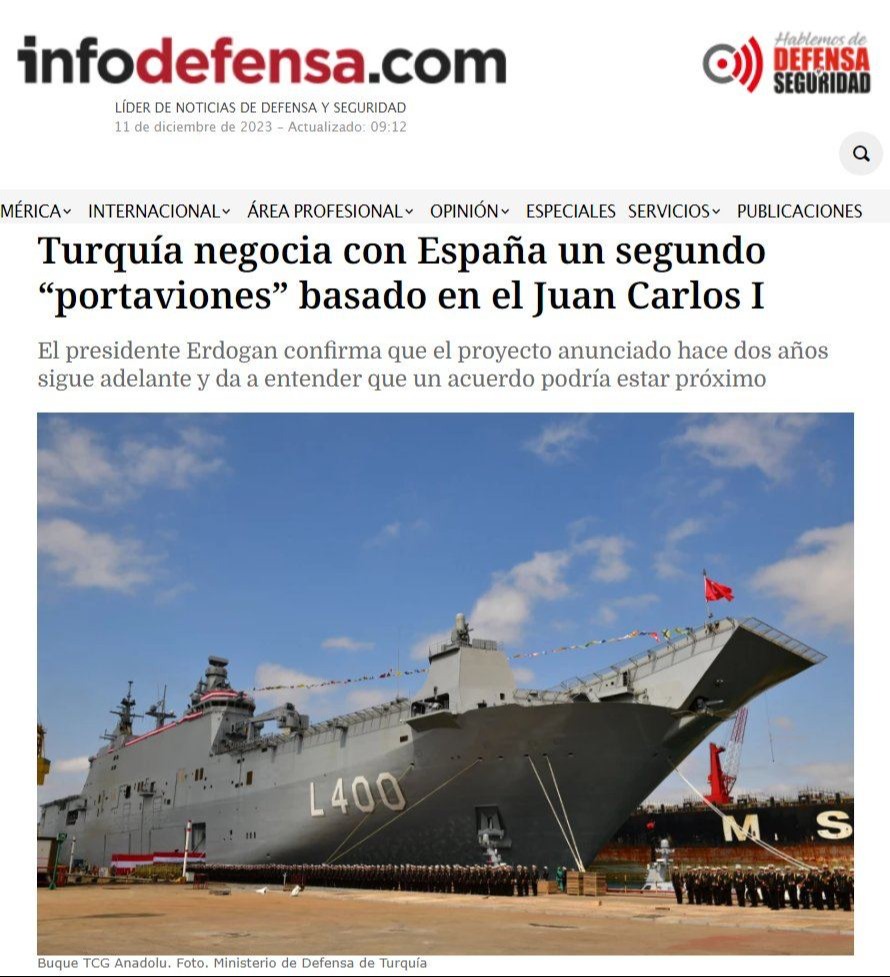 İspanya merkezli Infodefensa’ya göre Türkiye, İspanya'nın amfibi gemisi Juan Carlos I'i temel alan ikinci bir uçak gemisi inşa etmek için İspanya ile anlaşmaya çok yakın.