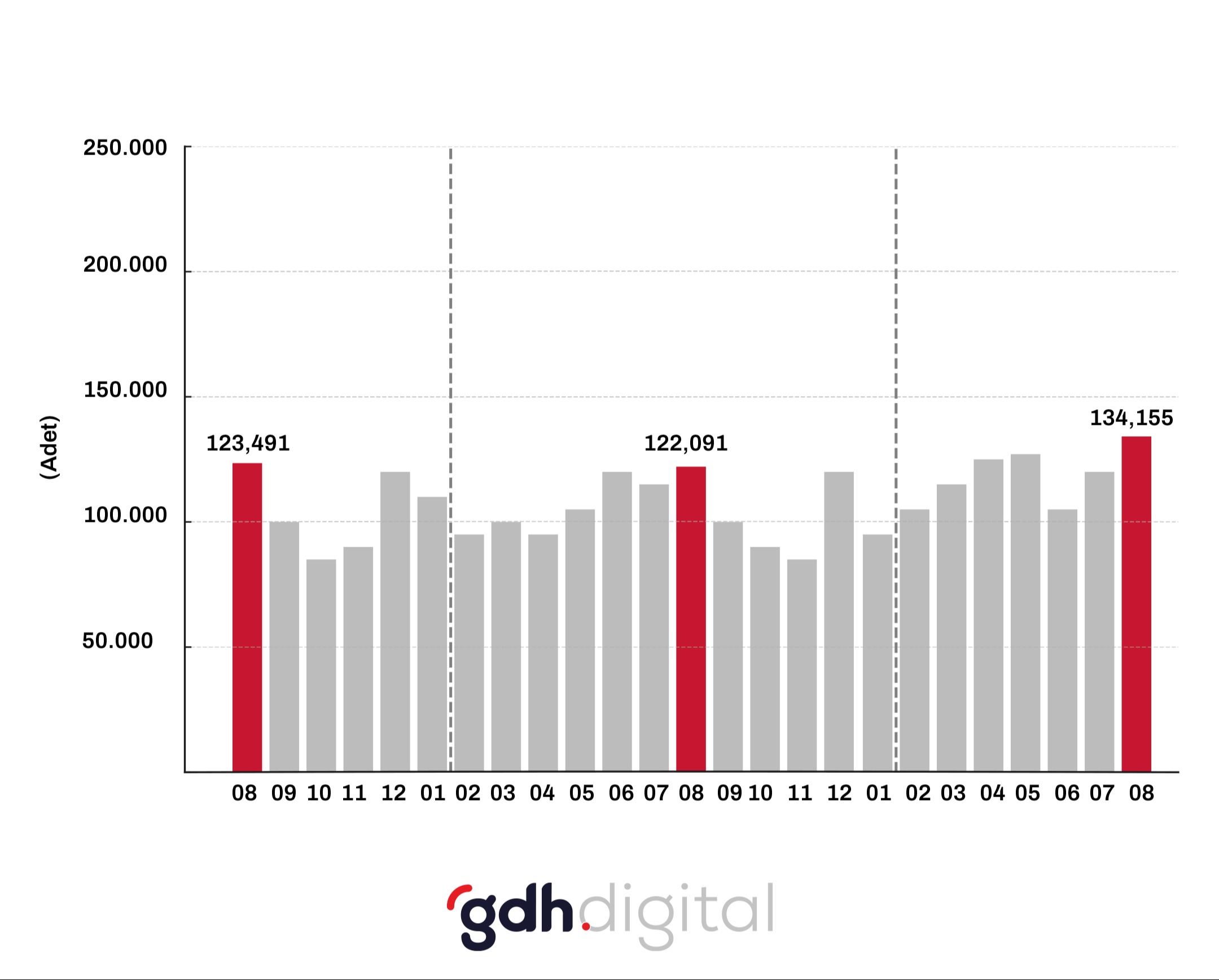 Türkiye genelinde konut satışları Ağustos ayında bir önceki yılın aynı ayına göre yüzde 9,9 artarak 134 bin 155 oldu. Konut satış sayısının en fazla olduğu iller sırasıyla 19 bin 467 ile İstanbul, 12 bin 496 ile Ankara ve 7 bin 44 ile İzmir olurken, en az olduğu iller sırasıyla 53 ile Hakkari, 93 ile Ardahan ve 116 ile Bayburt oldu.