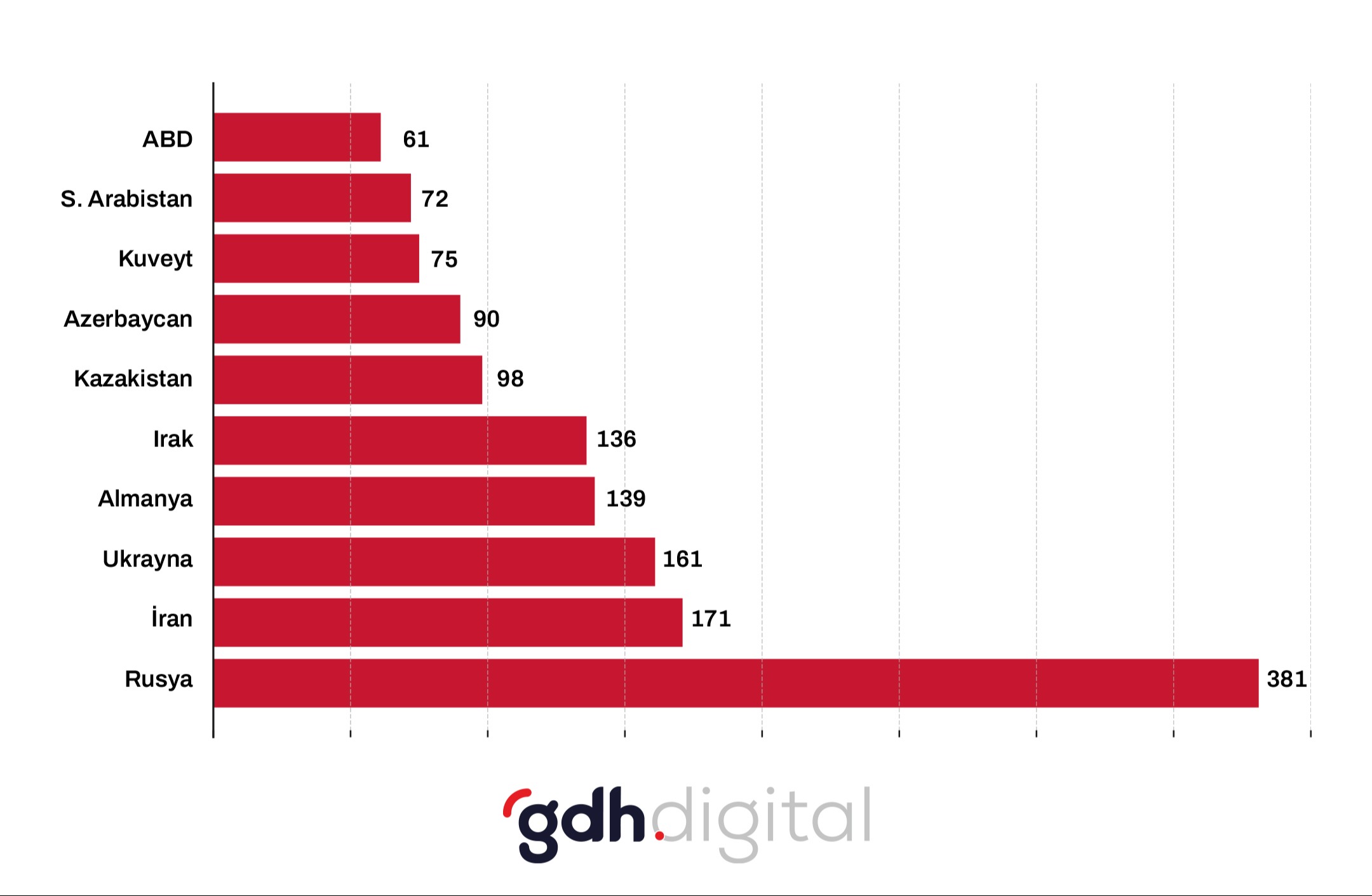 Ağustos ayında ülke uyruklarına göre en fazla konut satışı sırasıyla 381 ile Rusya Federasyonu, 171 ile İran ve 161 ile Ukrayna vatandaşlarına yapıldı.