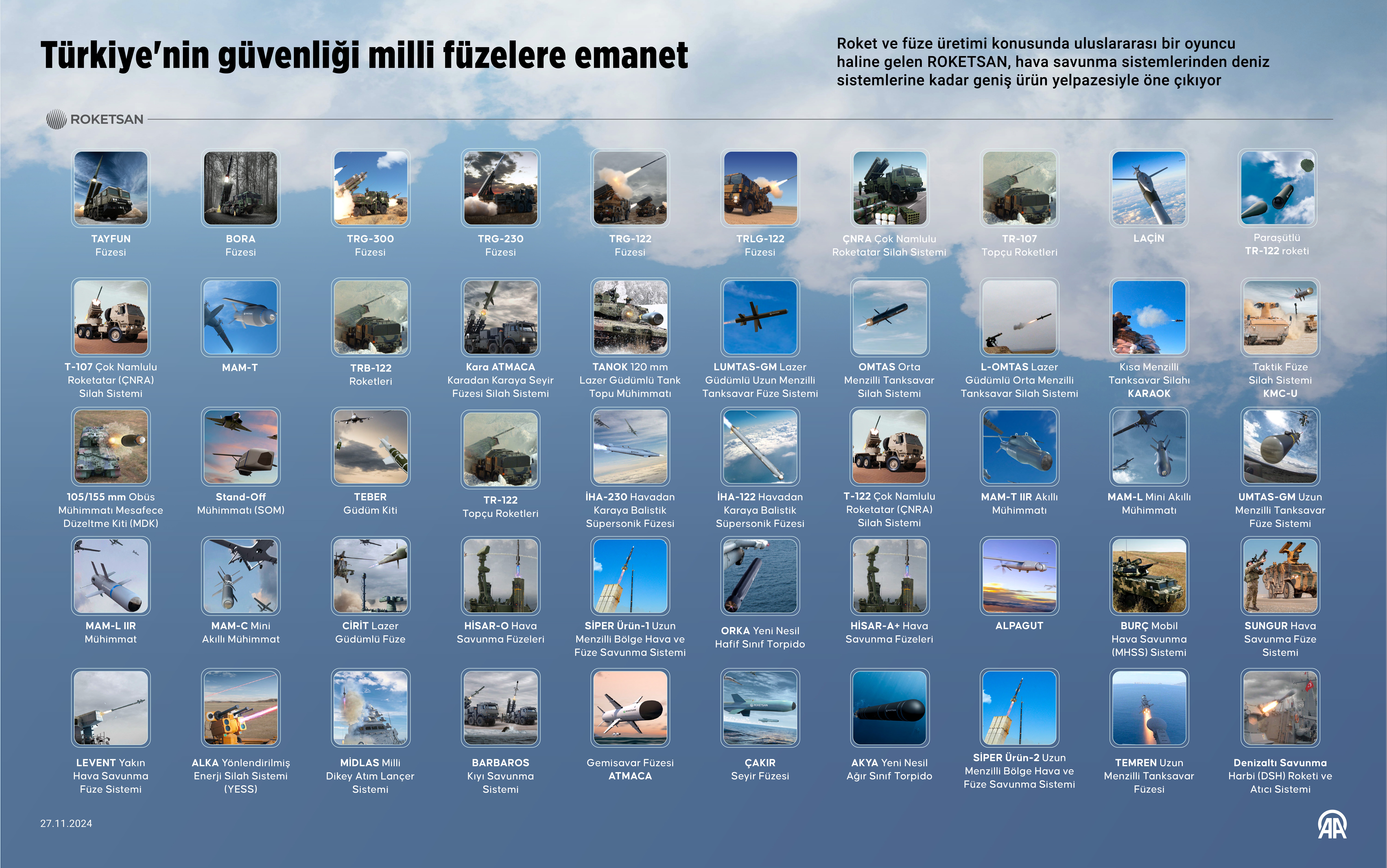 Roket ve füze üretimi konusunda uluslararası bir oyuncu haline gelen ROKETSAN, hava savunma sistemlerinden deniz sistemlerine kadar geniş ürün yelpazesiyle öne çıkıyor.