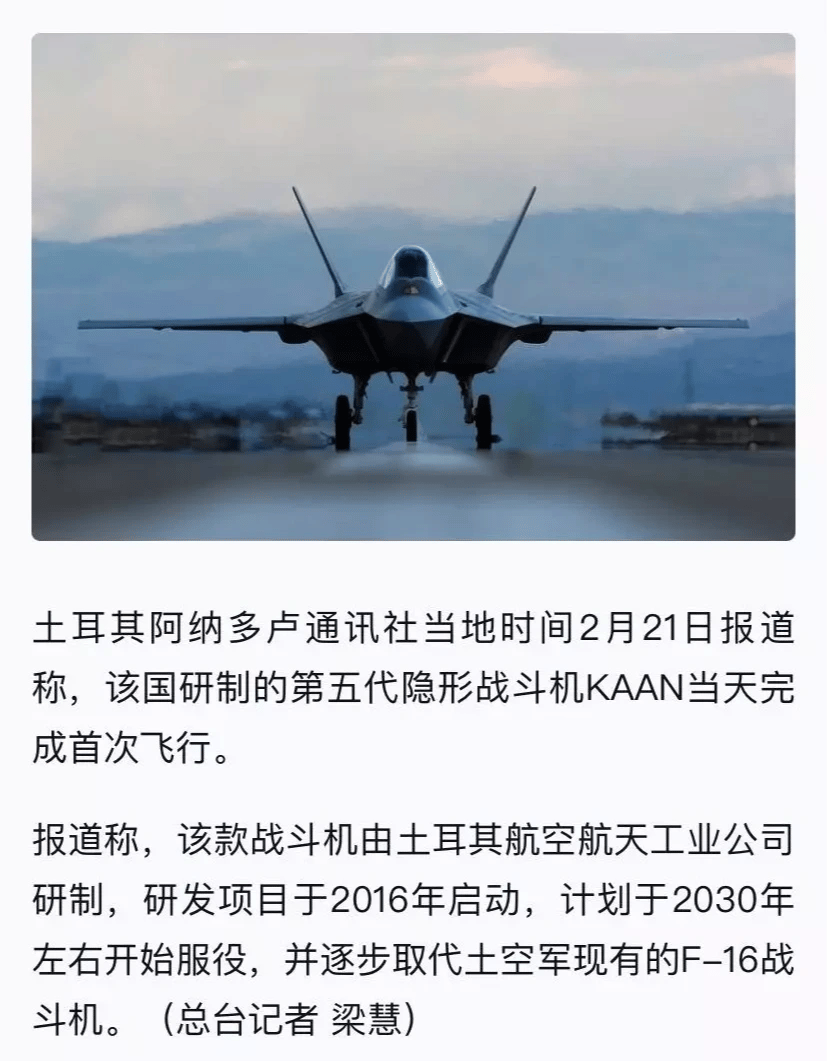 Çin devlet televizyonunun haber portalı gelişmeyi ‘Türkiye'nin beşinci nesil hayalet avcı uçağı KAAN ilk uçuşunu tamamladı’ başlığına yer verdi.