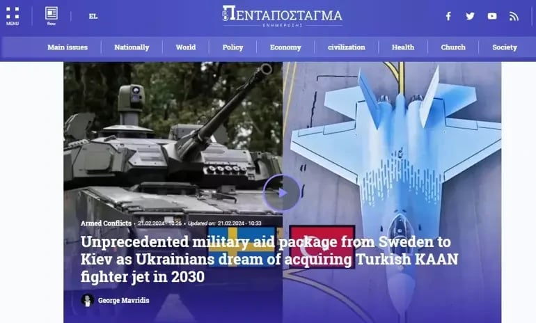 Pentapostagma gazetesi KAAN'ın ilk uçuşunu gerçekleştirdiğini hatırlatarak uçağın ilk müşterisinin şimdiden hazır olduğunu belirtti ve Ukrayna'yı işaret etti.