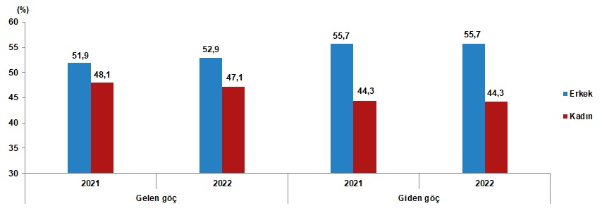 Türkiye'den yurt dışına göç eden kişi sayısı 2022 yılında bir önceki yıla göre %62,3 artarak 466 bin 914 oldu. Göç eden nüfusun %55,7'sini erkekler, %44,3'ünü ise kadınlar oluşturdu. Türkiye'den yurt dışına giden nüfusun 139 bin 531'ini Türk vatandaşları, 327 bin 383'ünü ise yabancı uyruklular oluşturdu.