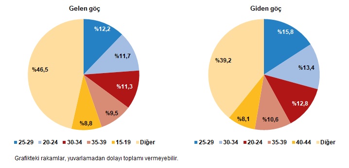En fazla 25-29 yaş grubundaki nüfus göç etti
