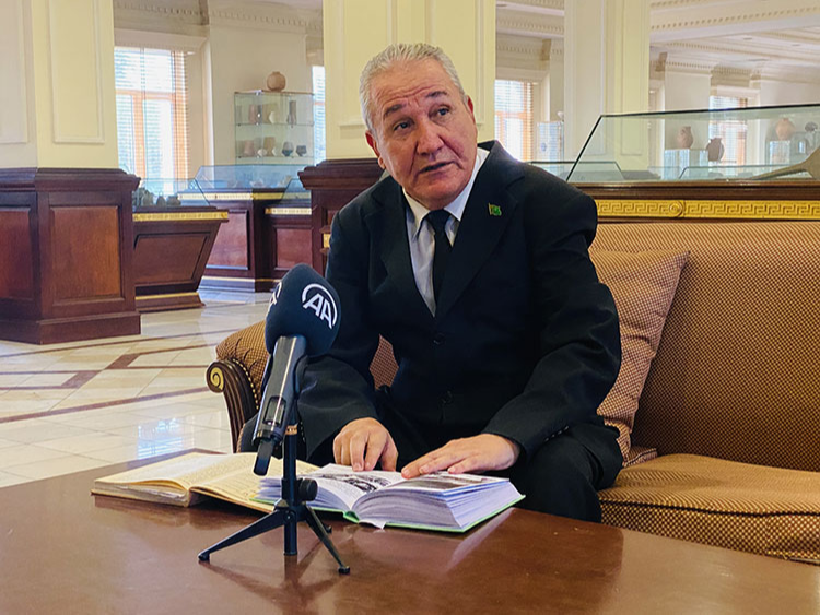 Dinozor ayak izlerinin olduğu bölgenin, Türkmenistan'da önemli turizm merkezi olduğunu dile getiren Bayramov, "Türkmenistan turizm açısından çok önemli değerlere ve mirasa sahip. Ülke toprakları içerisinde yer alan tarihi değerlere ve tarihi kalıntılara sahip yerler turizm açısından oldukça önemli." ifadelerini kullandı.