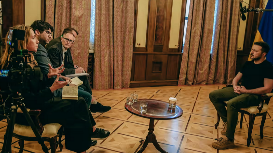 Yaklaşık 1 saatlik mülakatı sırasında kasvetli askerî durumdan bahsetmesine rağmen rahat ve olumlu görünen Zelenski, Eski Britanya Başbakanı Boris Johnson'dan "Ukrayna'ya gerçekten yardım eden iyi bir dost" olarak bahsetti. Eski başbakanı özleyip özlemediği sorulan Zelenski, "Bana onu özleme fırsatı vermiyor. O her zaman burada" diyerek şaka yaptı.