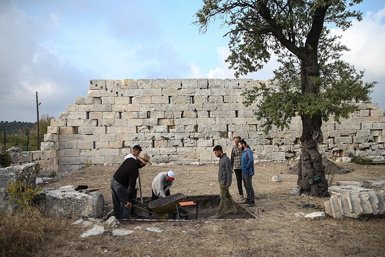 Ekip, ilk olarak antik kentteki, Helenistik döneme ait yaklaşık 30 metre yüksekliğinde rahip krallar için yapılan 5 katlı yapıda arkeolojik kazı çalışması yapıldı.