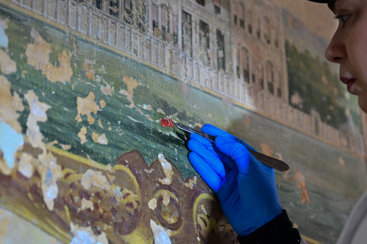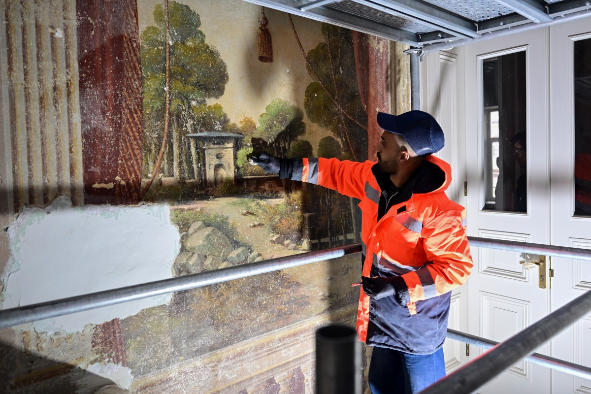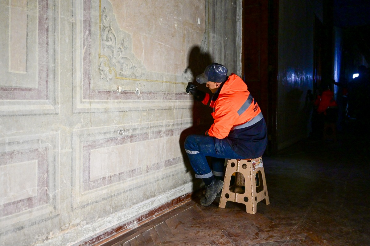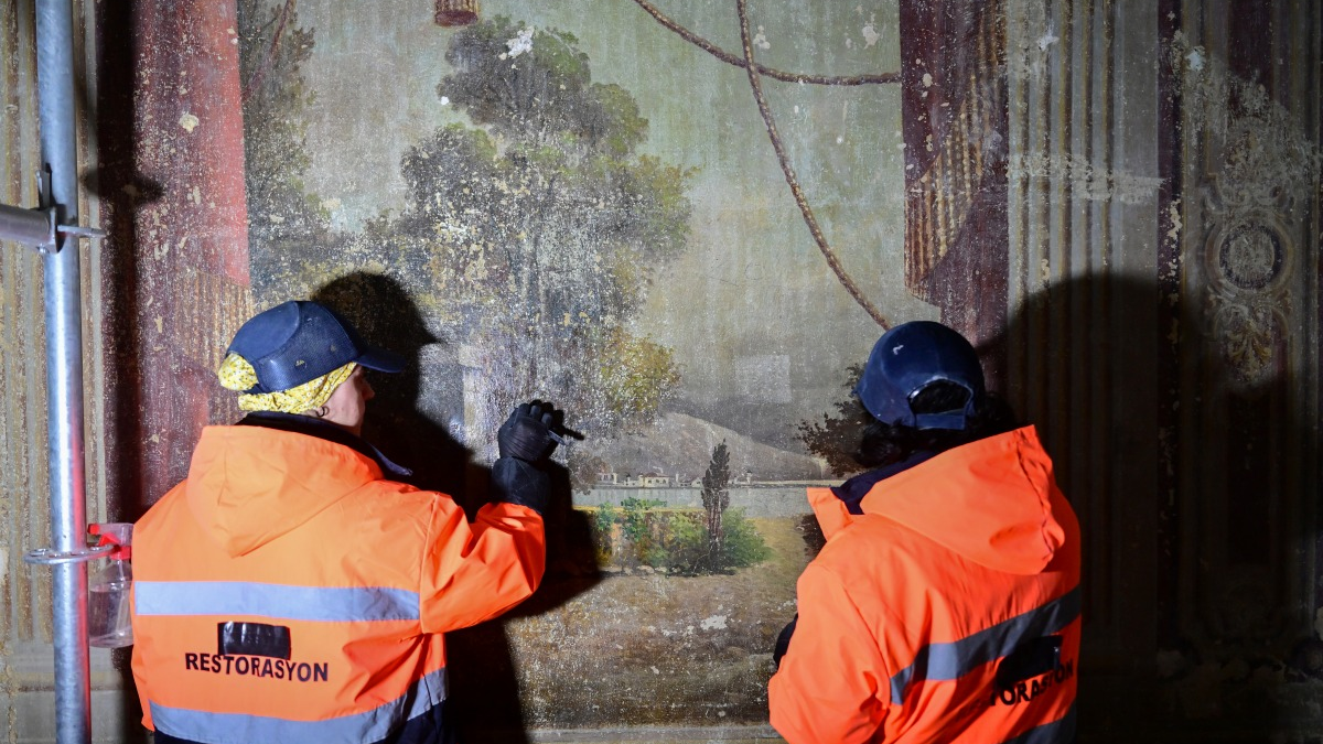 Yıldız Sarayı'nda üstüne 5 kat sıva çekilmiş kalem işi duvar resimleri bulundu
