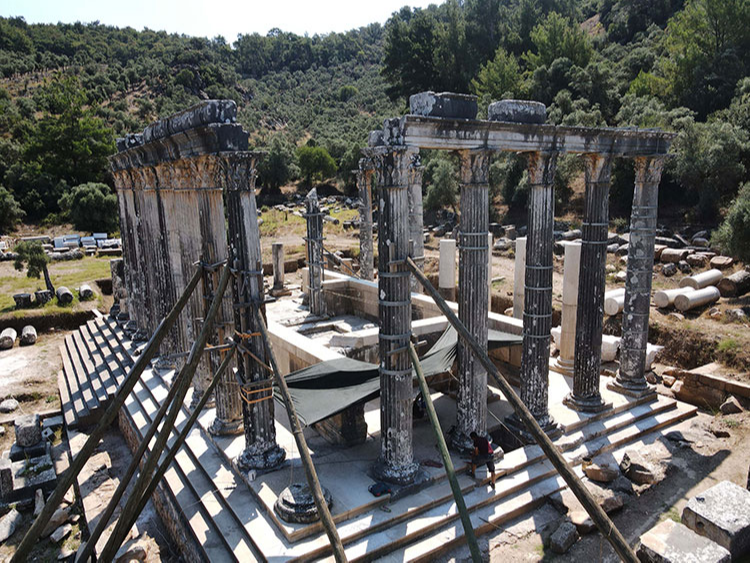 Milas ilçesindeki Selimiye Mahallesi sınırları içinde yer alan ve MÖ 2. yüzyılda inşa edilen Euromos Antik Kenti'nde kazı çalışmaları sürdürülürken, Zeus Lepsynos Tapınağı'nın ayağa kaldırılması için çalışma yürütülüyor.